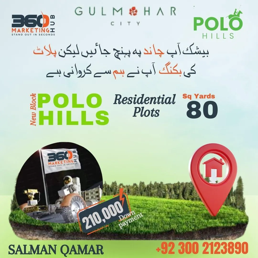 Polo Hills is a new block at Gulmohar City Karachi, offering 80 & 125 sq. yds plots with easy installments. Located by the M9 motorway, this SBCA & SDA-approved housing project guarantees quality living.